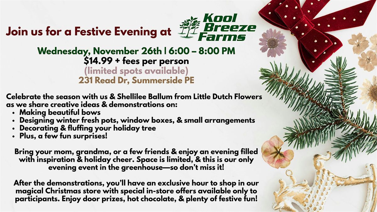 Celebrate the season with us at Kool Breeze Farms, Chrysta Campbell, and Shellilee Ballum from Little Dutch Flower Farm as we share creative ideas and demonstrations on: