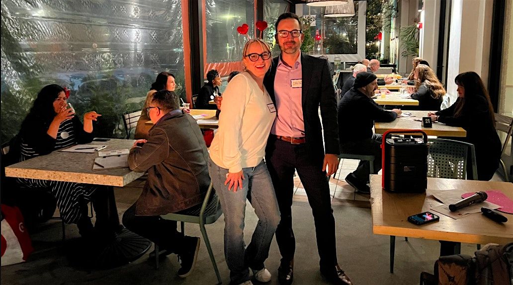 9/9:30 PM - After the speed dating event, everyone mingles, fills out Connection Cards, and drops them into the match bags of the people theyโre interested in.