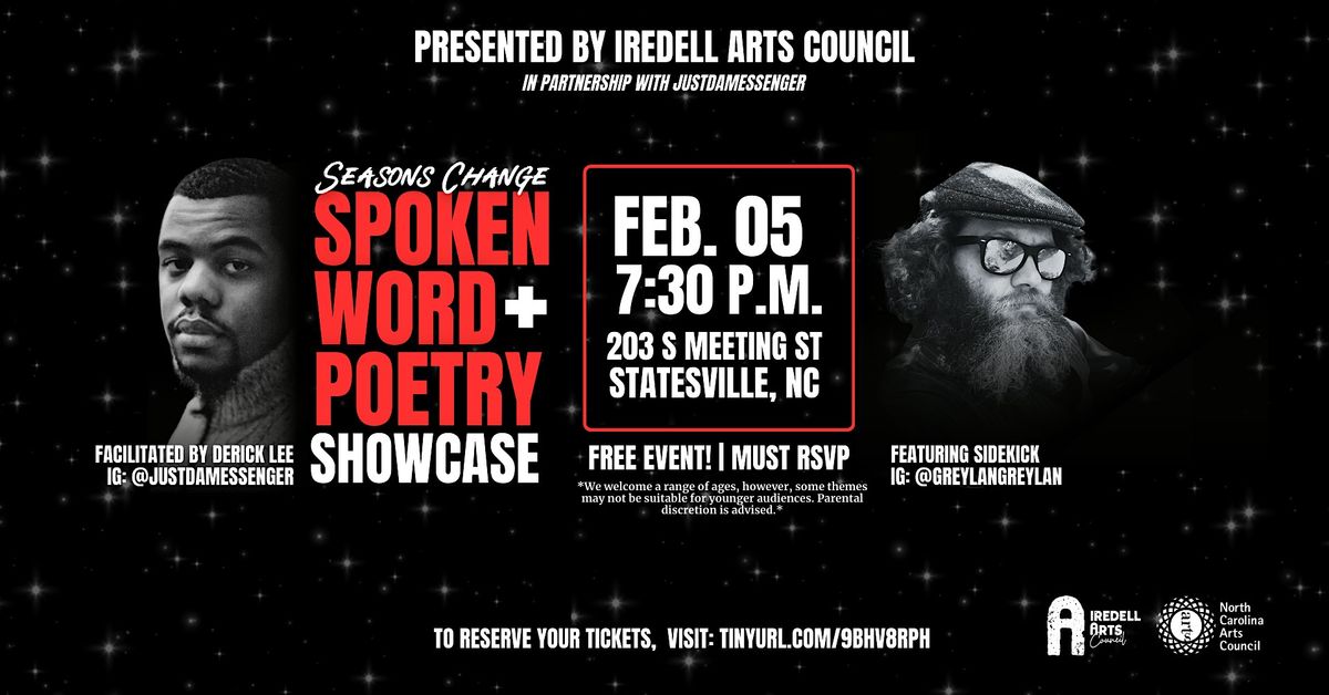 Iredell Arts Council, in partnership with Derick Lee (@JustDaMessenger), welcomes the audience to a night of captivating storytelling.About this Event