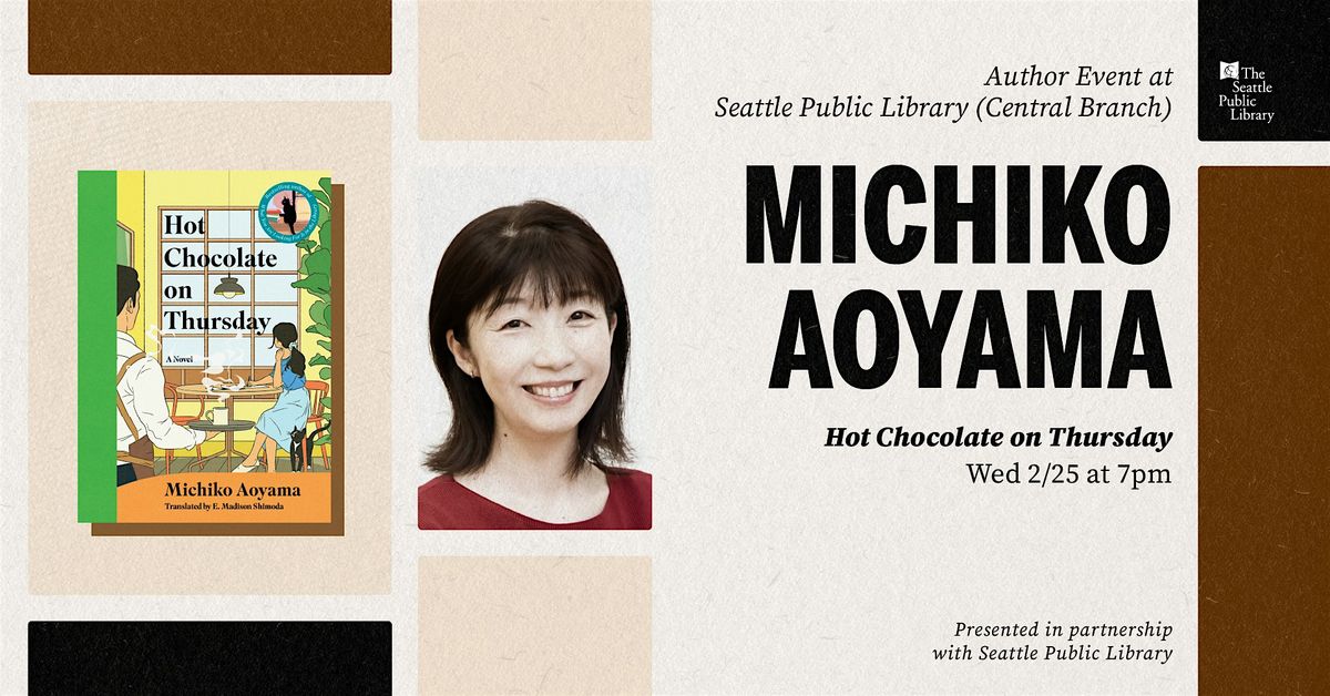 Third Place Books and the Seattle Public Library present a conversation with Michiko Aoyama, the bestselling author of What You Are Looking For Is in the Library and a popular author of "healing fiction" in Japan. Michiko's new novel, Hot Chocolate on Thursday (translated by E. Madison Shimoda), centers around the charming Cafe Marble and the healing comfort it provides those who pass through its doors.