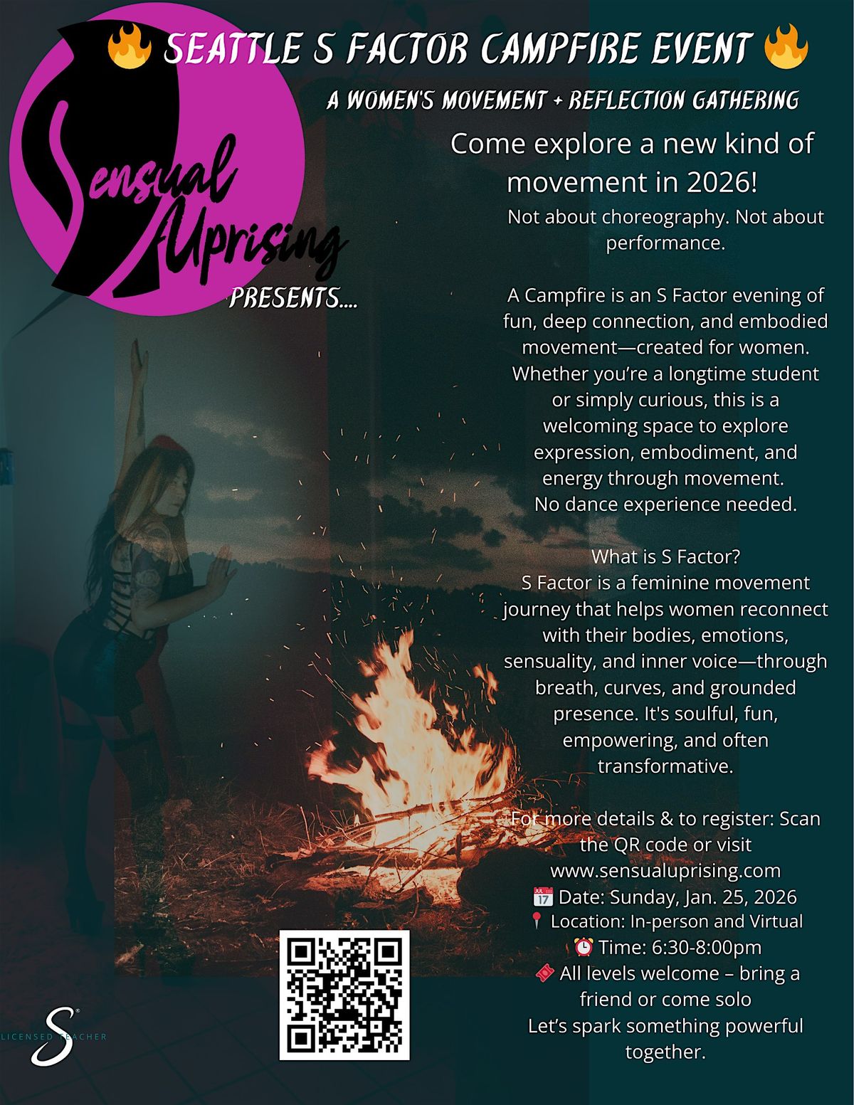A Campfire is an S Factor evening of fun, deep connection, and embodied movement-created for women.