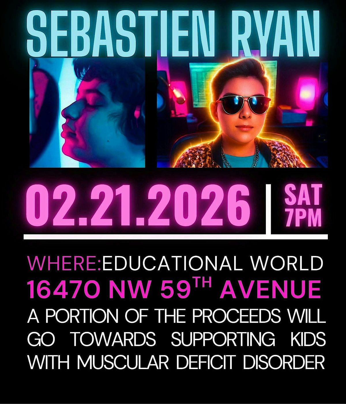 Get ready for an unforgettable night of live music with Sebastien Ryan performing hits like 'Baila Baila', 'Magic' and ''Vida Mia'. A portion of the concert's proceeds will go towards helping kids with Muscular Deficit Disorder. Come support Sebastien and a great cause during his debut performance!