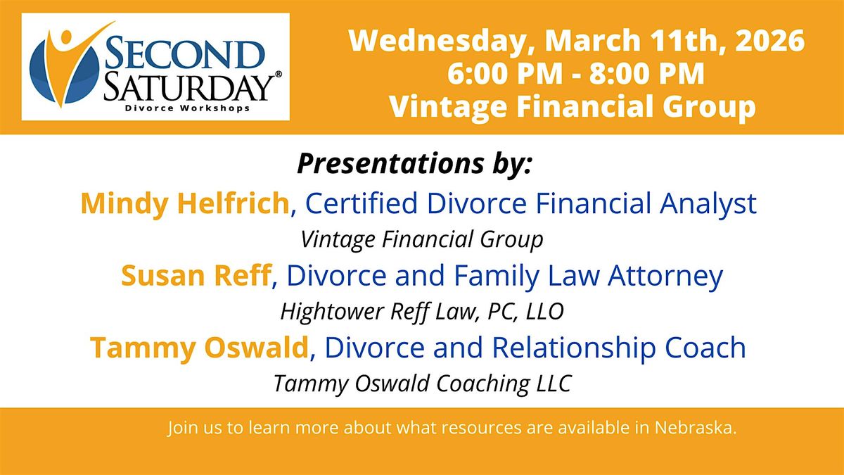 This presentation will be specific to Nebraska, featuring three presenters. Mindy S. Helfrich is a Certified Divorce Financial Analyst, and is Vice President of Vintage Financial Group in Omaha, NE. Susan Reff is a partner attorney at the Omaha, NE law office of Hightower Reff Law PC, LLO, who specializes in family law and divorce. Tammy Oswald is a Divorce and Relationship Coach with Tammy Oswald Coaching LLC.