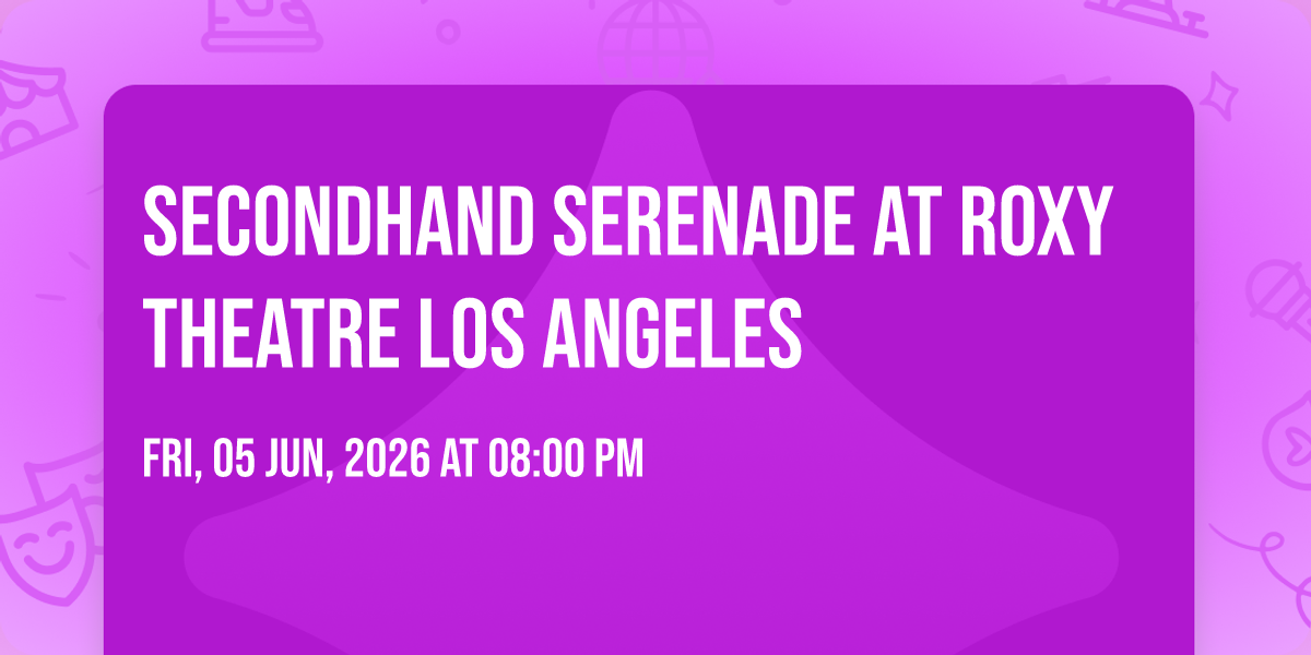 ✨ Experience the magic of Secondhand Serenade at Roxy Theatre Los Angeles, where moments become memories that last a lifetime! 🏛️ The iconic Roxy Theatre Los Angeles in West Hollywood, CA sets the perfect stage for an unforgettable celebration on June 5th, 2026 at 08:00 PM. 🌟 It's been a curated experience that brings together the best of entertainment and innovation, creating an atmosphere of wonder and excitement. From the moment you arrive, you'll be immersed in a world where the ordinary transforms into the extraordinary. 🎊 Book early to secure your place in what promises to be an event that will be talked about for years to come!