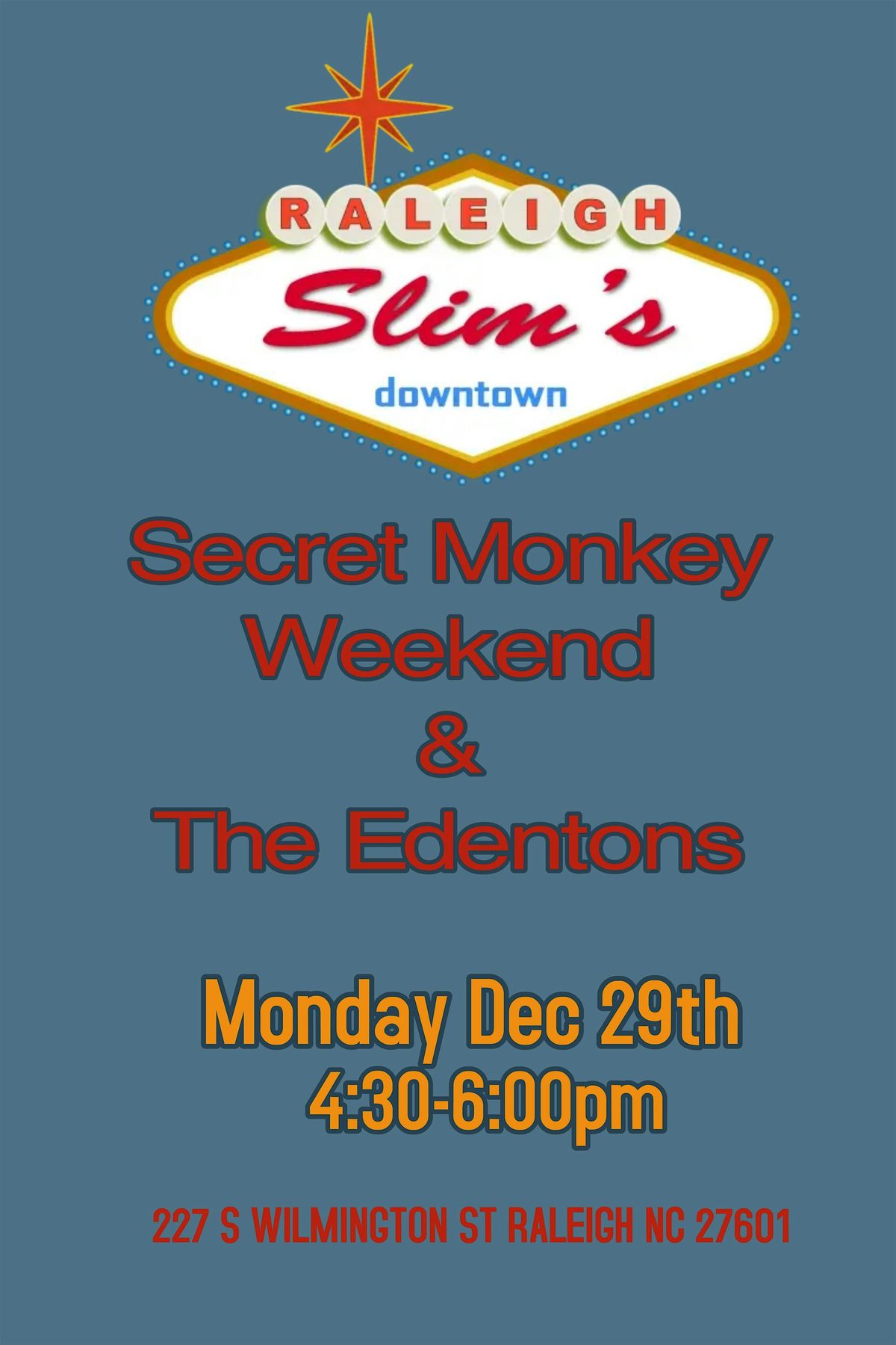 Secret Monkey Weekend and The Edentons are playing at Slim’s on December 29th from 4:30-6:00pm! Secret Monkey Weekend is a family rock n roll band featuring the amazing Ella, Lila, and Jefferson. Their songs are full of joy and creative rhythm. Joining the lineup is The Edentons. Grab a drink and rock out!