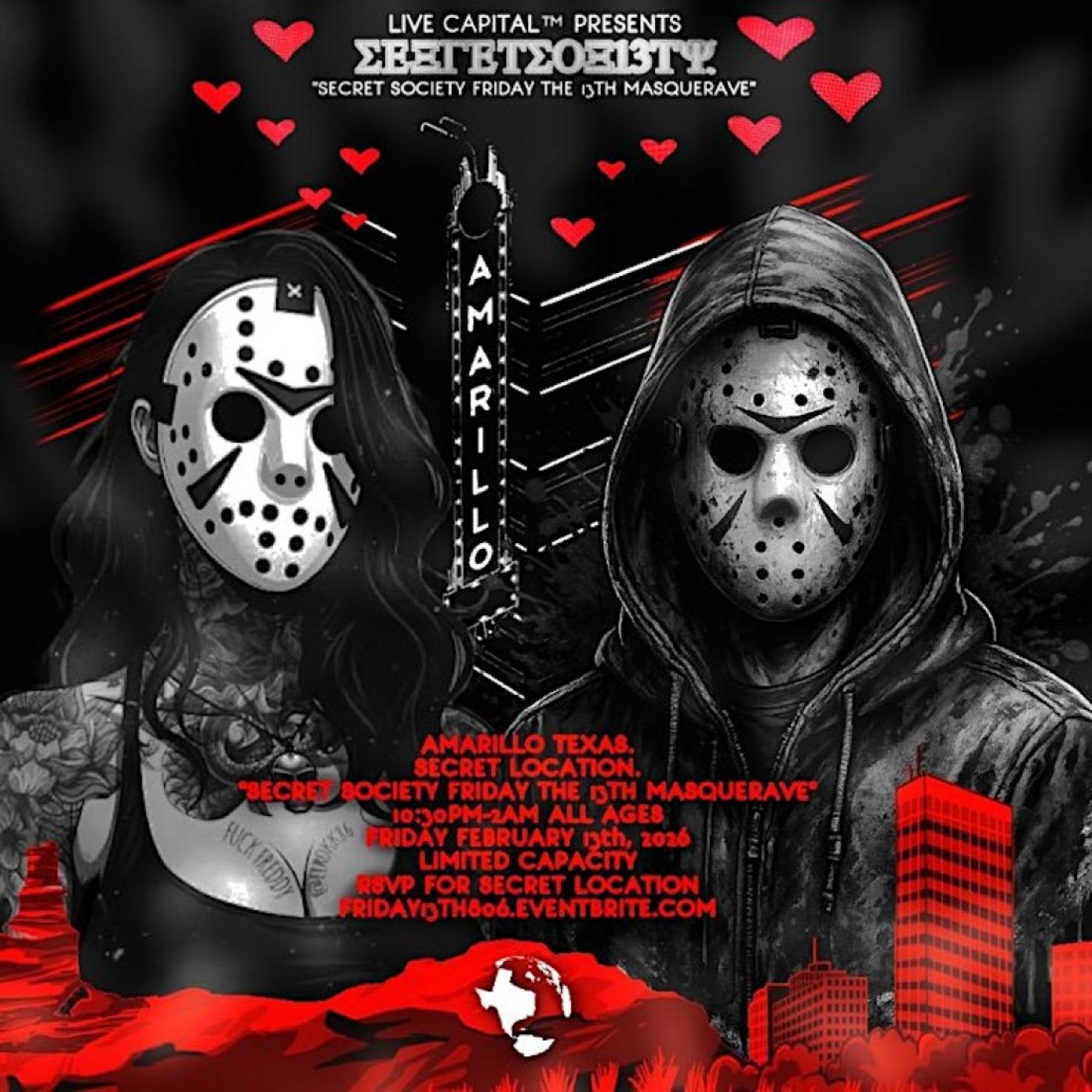 Live Capital ™ Presents SECRET SOCIETY FRIDAY THE 13TH MASQUERAVE February 13th, 2026 In Amarillo, Texas