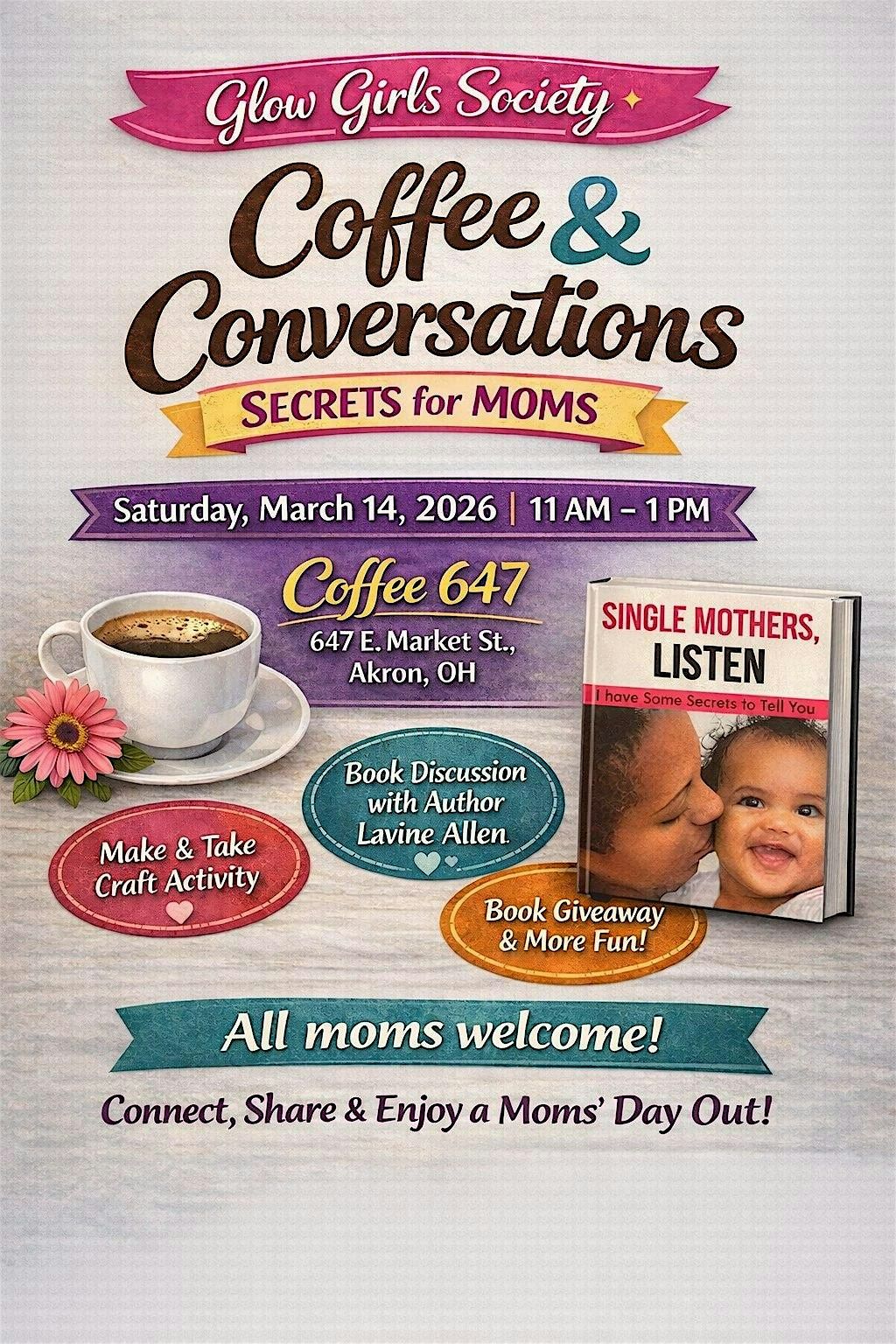 We’ll be diving into a “secret” from the book "Single Mothers Listen, I Have some Secrets for You" featuring author Lavine Allen, but let’s be clear, these secrets don’t just apply to single moms. They apply to ALL moms! Whether you’re married, single, working, stay-at-home, or somewhere in between, this conversation is for every woman doing the beautiful (and sometimes messy) work of motherhood.