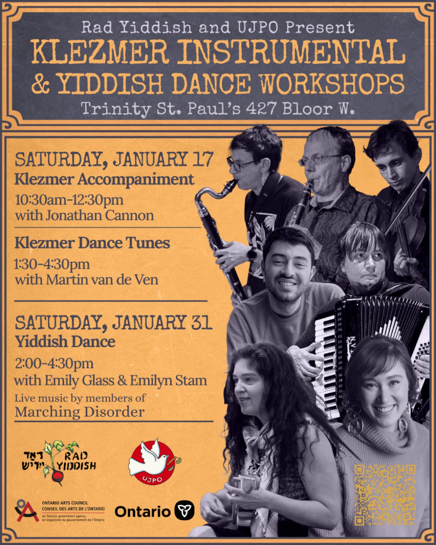 Klezmer and Yiddish Dance Workshop Series is presented with generous support from the Ontario Arts Council.