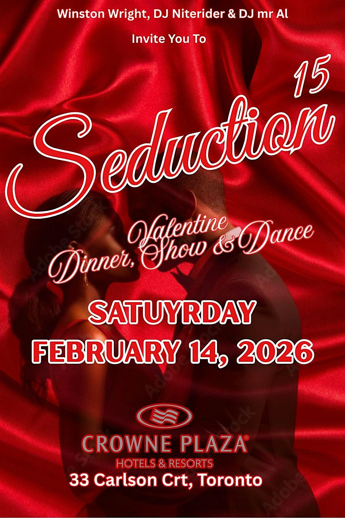 Get ready for a night to remember at the 15th Annual Valentine's Dinner Show and Dance, presented by Seduction. Held at the luxurious Crowne Plaza Hotel & Resort, this event promises an unforgettable evening of fine dining, live entertainment, and dancing.