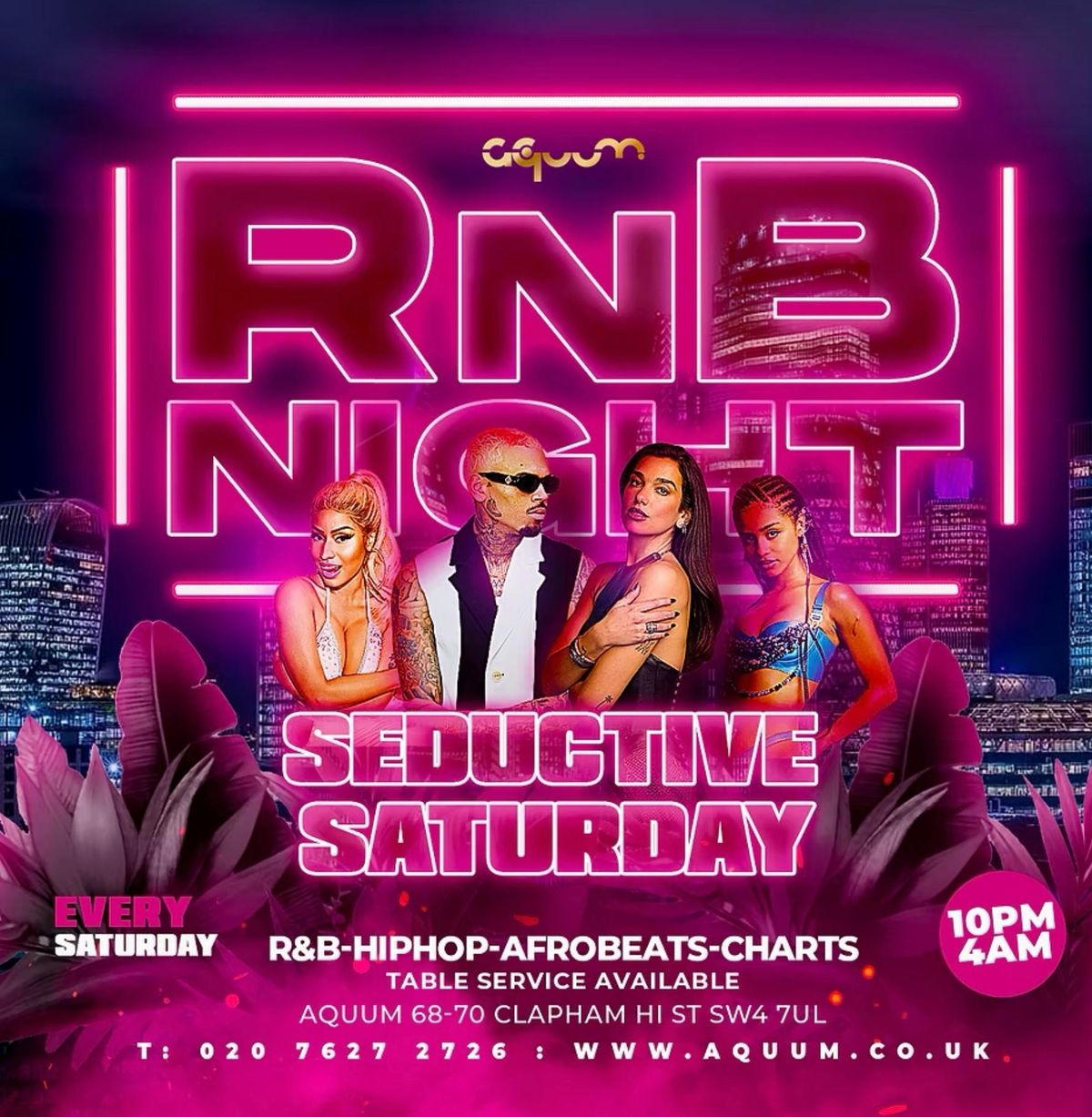 Seductive Saturdays @ Aquum Clapham // Old Skool R&B, Hip-Hop, Party Anthems // 4am CloseExperience a dazzling Friday night at Aquum, Clapham's premier nightlife destination. The evening starts with the lively vibe of bottomless dinners, setting the stage for a night filled with energy. As the clock strikes 10pm, the atmosphere shifts with DJs taking over, spinning the hottest tracks in commercial R&B and Hip Hop until the early hours of 3:30am. Whether you're there to enjoy the dynamic music, savour the meticulously crafted cocktails, or simply soak in the electrifying ambiance with friends, Aquum promises an unforgettable night out.