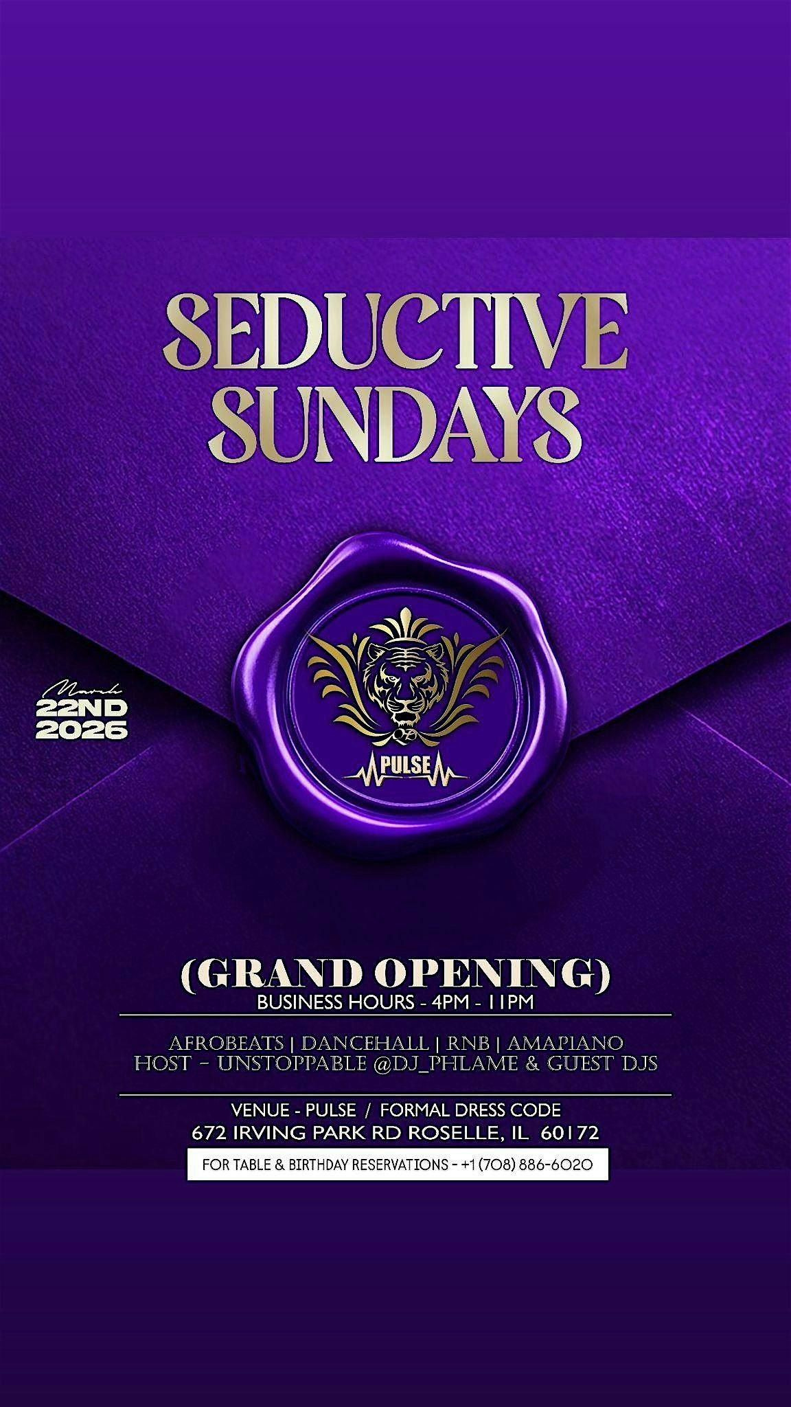 Seductive Sundays makes its official Grand Opening at Pulse in Roselle on March 22, 2026 from 4PM–11PM and we’re setting the tone early.
