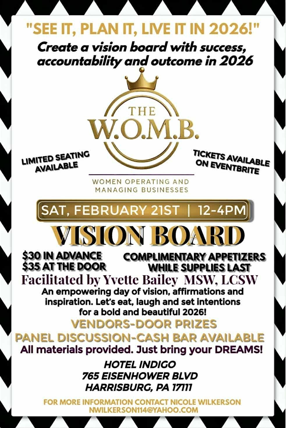 Get ready to intentionally design your future at our See It, Plan It, Live It in 2026 Vision Board Experience. This empowering event is designed to help you gain clarity, build accountability, and create a visual roadmap for success in the year ahead.
