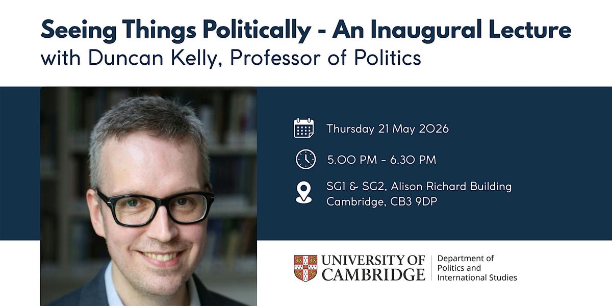 Professor of Politics, Duncan Kelly will give his inaugural lecture with drinks to follow in the atrium of the Alison Richard Building.