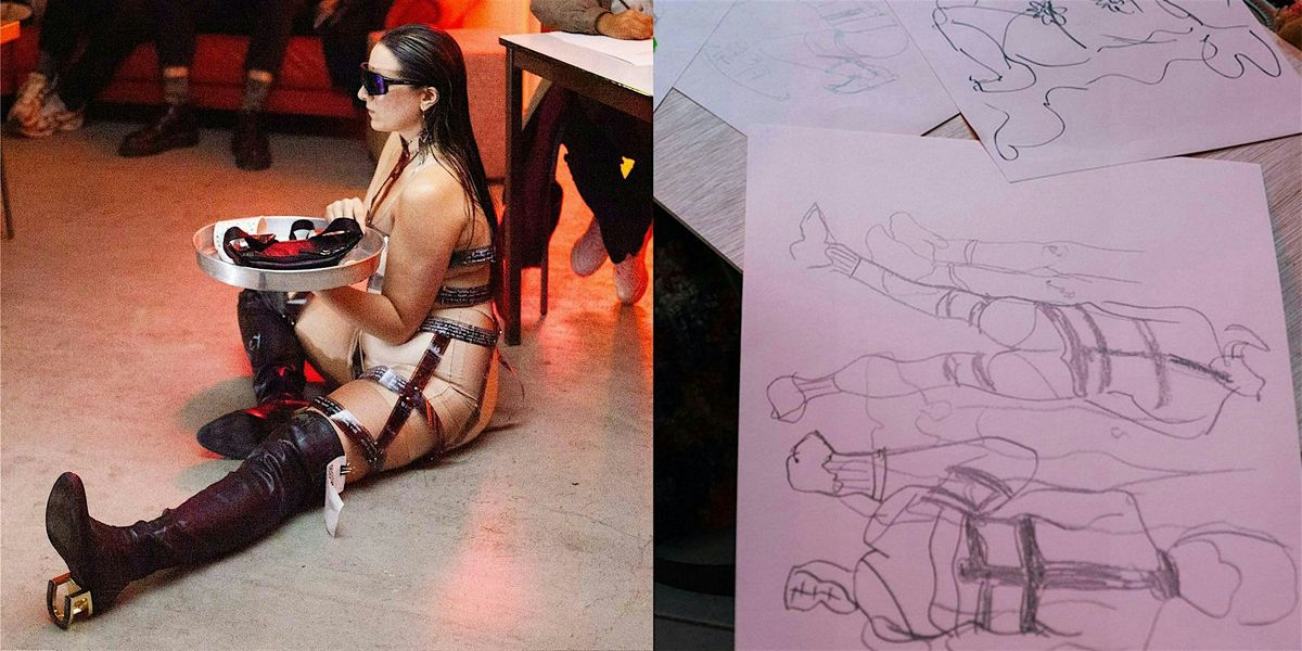 A live drawing session examining gendered care, domestic labor, and the weight of inherited roles