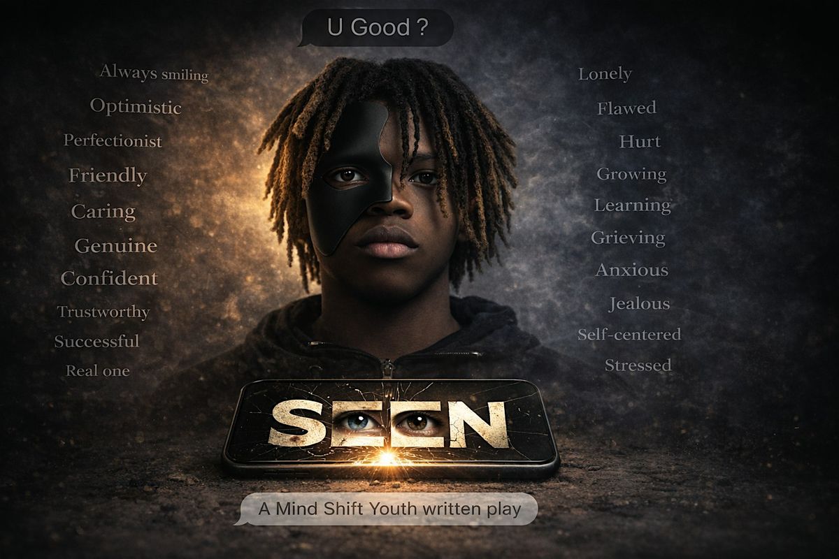 SEEN is a powerful, youth-created stage production that explores the quiet weight of high-functioning pain, digital pressure, and the fear of being “too much.” Through spoken word, movement, music, and raw dialogue, this original play follows a group of friends navigating breakups, group chats, unread messages, and the unspoken responsibility of carrying each other’s mental health alone.