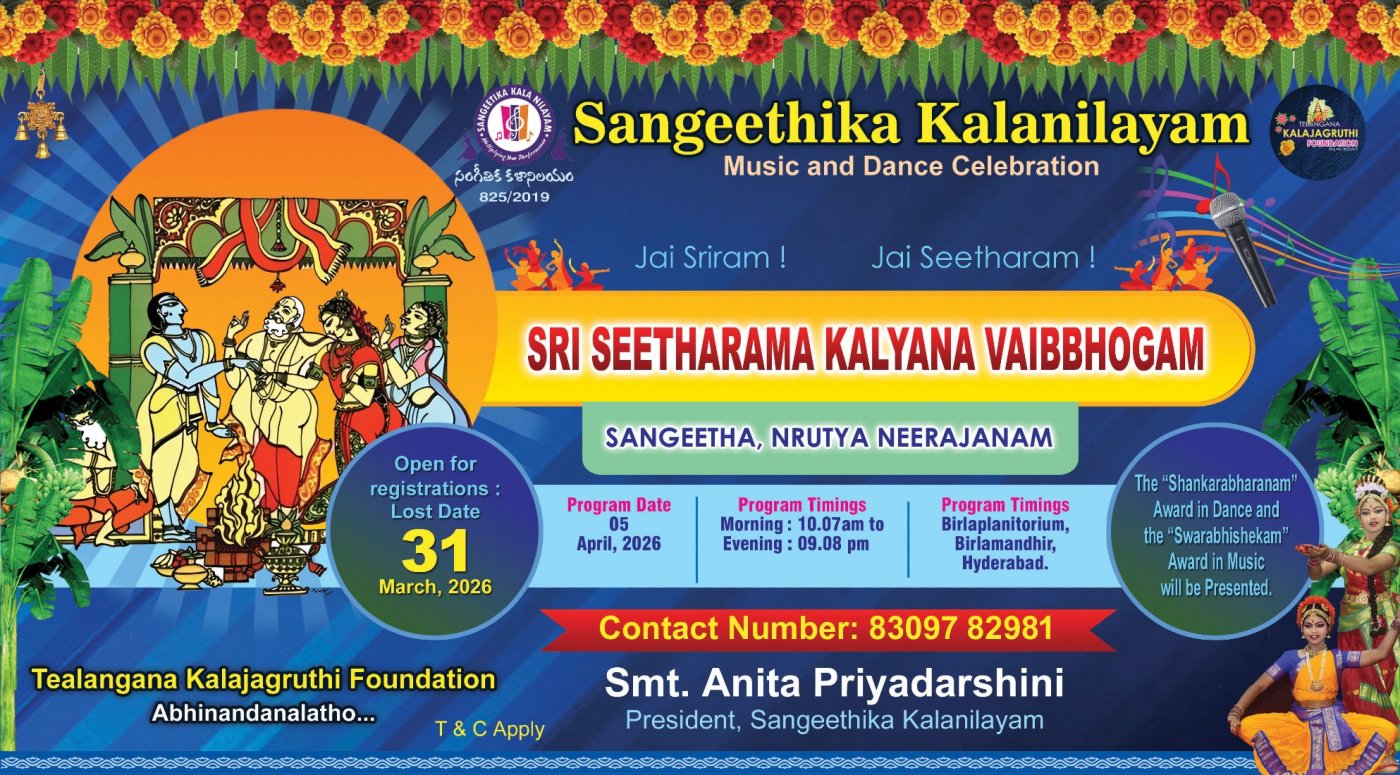Join us for an enchanting extravaganza, "Seetha Rama Kalyana Vaibhogam," a celebration of classical music and dance like never before! πΆβ¨