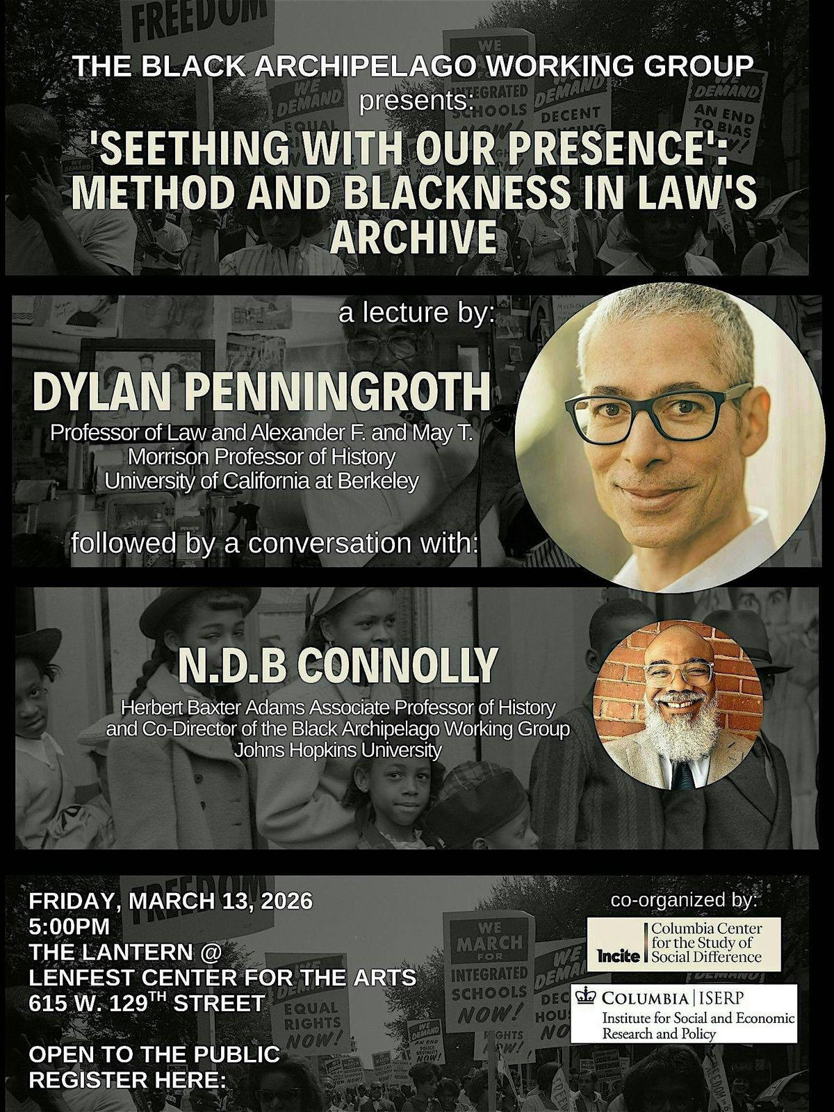 This lecture and conversation are part of the first public event organized by the Black Archipelago and the Crisis of Place working group, in collaboration with the Center for the Study of Social Difference at Columbia University, and supported by the Institute for Social and Economic Research and Policy.