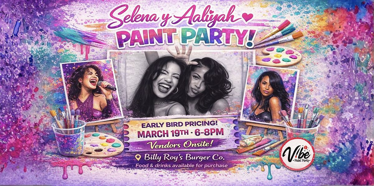 Selena y Aaliyah Paint Party is pulling up March 19th from 6–8PM and we’re bringing the glitter, the throwbacks, and the main-character energy.