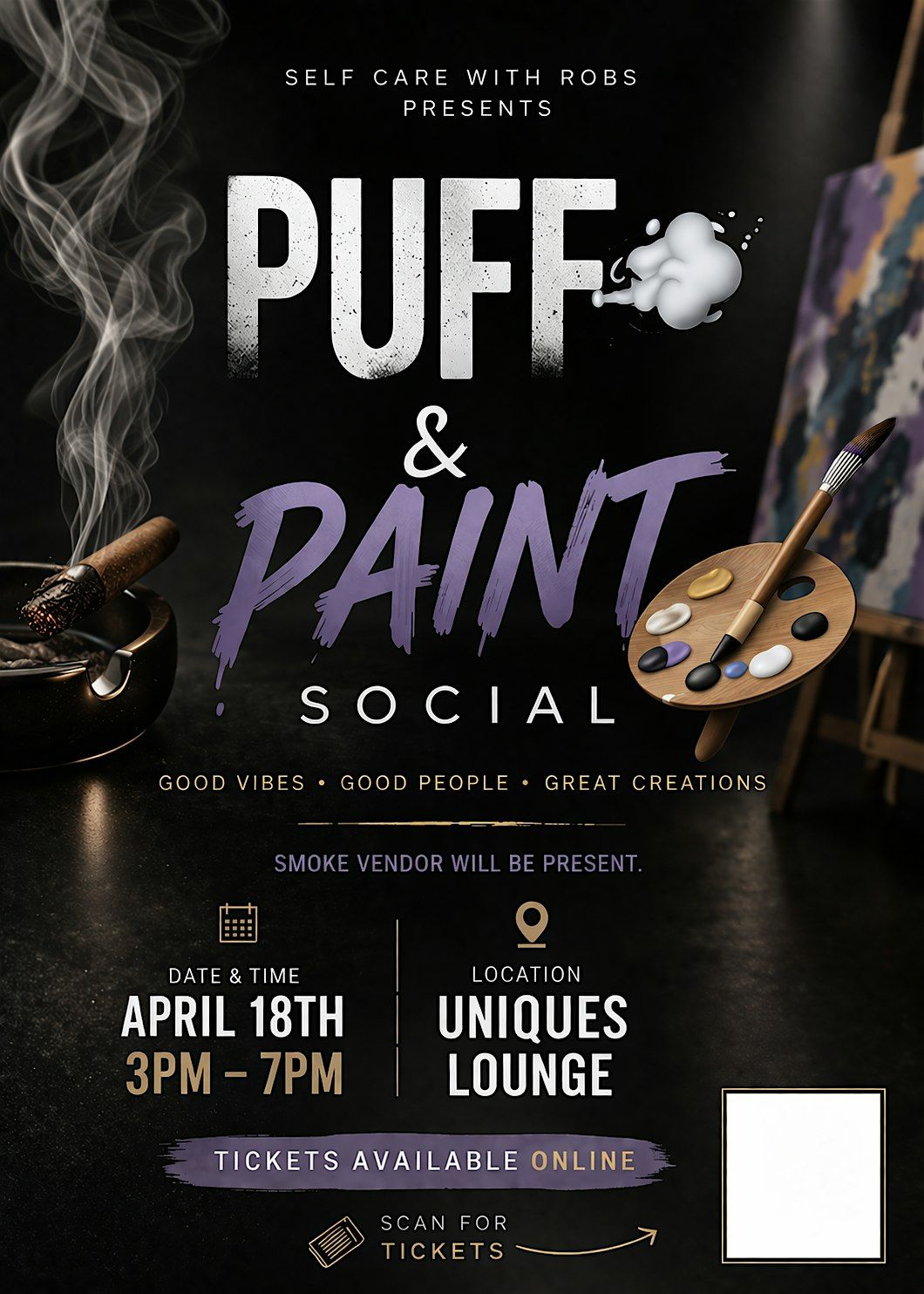 Puff & Paint Speak Easy @ Uniques Lounge! Sat | 21+ | On-site vendor, full bar & kitchen. Art supplies incl. w/ ticket. Vibe out. ✨About this Event