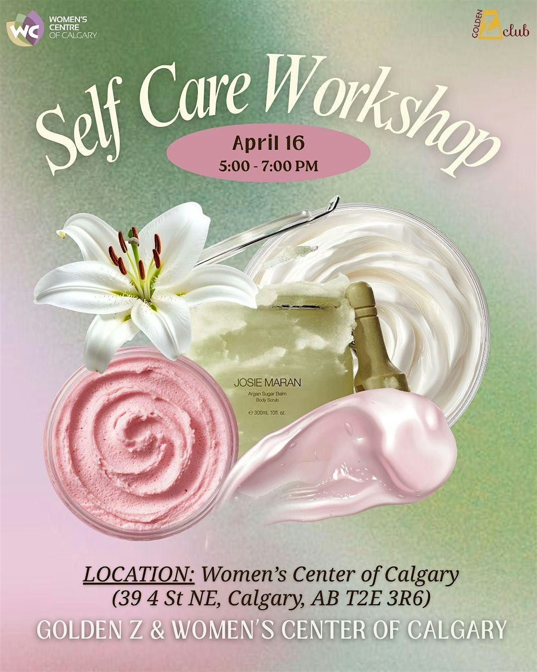 The Women's Centre of Calgary and the University of Calgary's Golden Z Club are pleased to offer a self-care focused workshop for women and gender-diverse folks. In this workshop, you will have the opportunity to make take-home products (candles and body scrubs) and chat about the importance of self-care. Refreshments (food and beverages) will be provided. And you will receive a gift for your participation!
