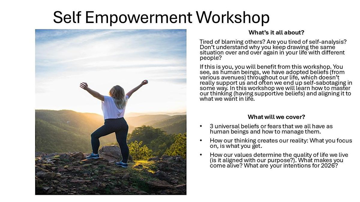 During the Self Empowerment Workshop, you will learn how to master your thinking. After the workshop, we will do a an exercise called the Wheel of Life and have a open forum for discussion so please find a quiet corner where you can focus 100% on the workshop so you get the most out of it.