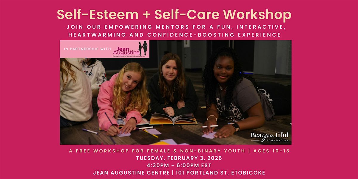Join us for an empowering afternoon designed to help girls build confidence, celebrate self-esteem, positive body image and learn the power of practicing self-care! This interactive workshop will be led by our amazing team and inspiring volunteer mentors who are passionate about helping youth feel seen, heard and supported. Through engaging activities, group discussions and creative expression, participants will leave feeling uplifted, connected and more confident in who they are.