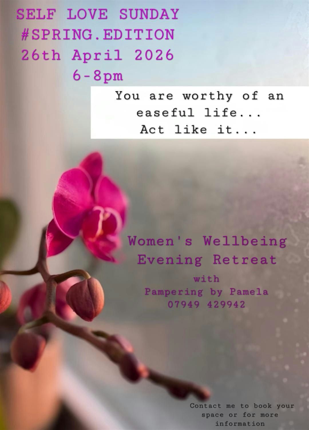 Women's Wellbeing with Pampering by Pamela is a series of evening retreats, an opportunity to pause and have some โme timeโ, whilst being invited to take part in mindfulness, movement and meditation, offering a break from daily routine and promoting personal transformation and self-care.