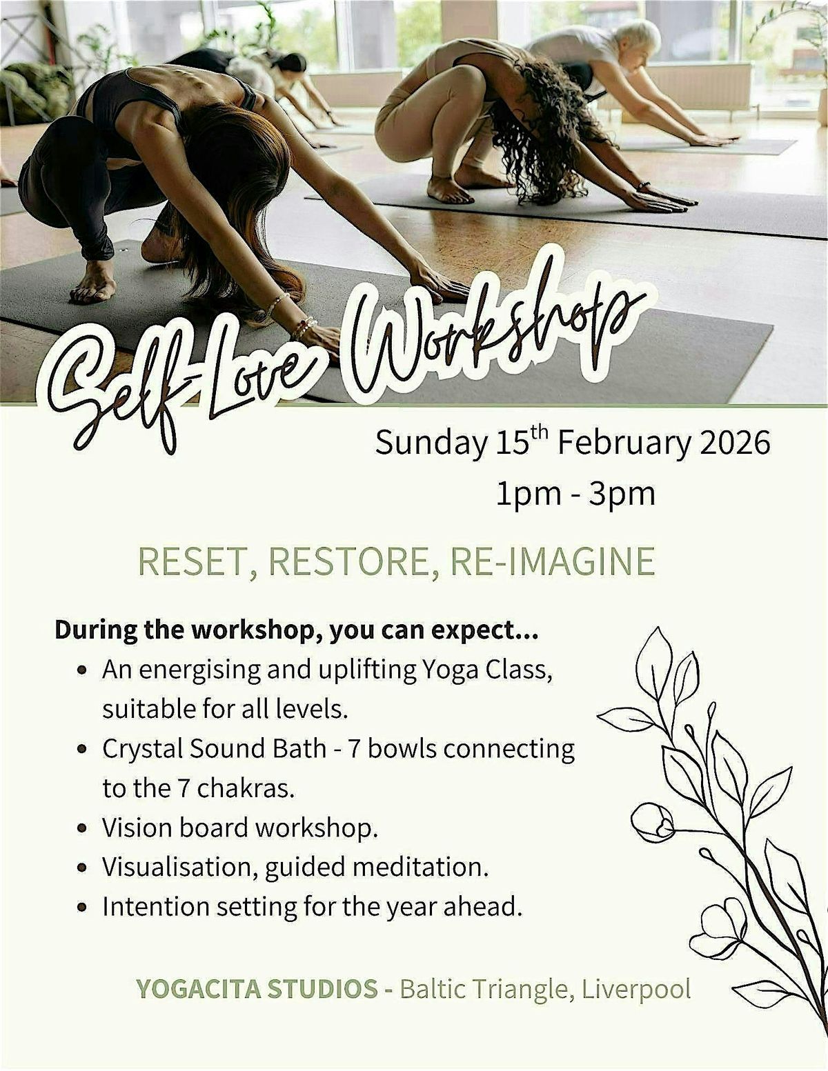 Through a nourishing yoga class, a sound bathing experience, visualisations and the creation of a vision board, we will press the reset button together and fill up our own cups, in a beautiful, cosy, softly heated yoga studio situated in the heart of the Baltic Triangle - Yogacita.