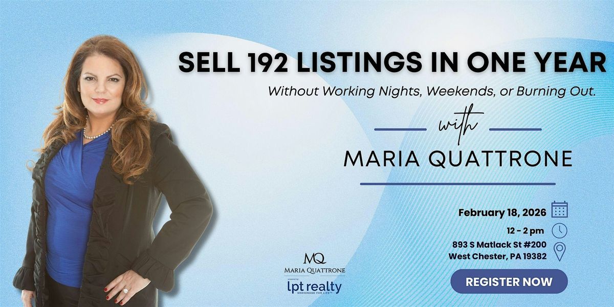 Join Maria Quattone and the Gary Mercer Team for an in-person, results-driven event designed to help agents create the systems, structure, and strategy needed to achieve up to 192 listings in a single year.
