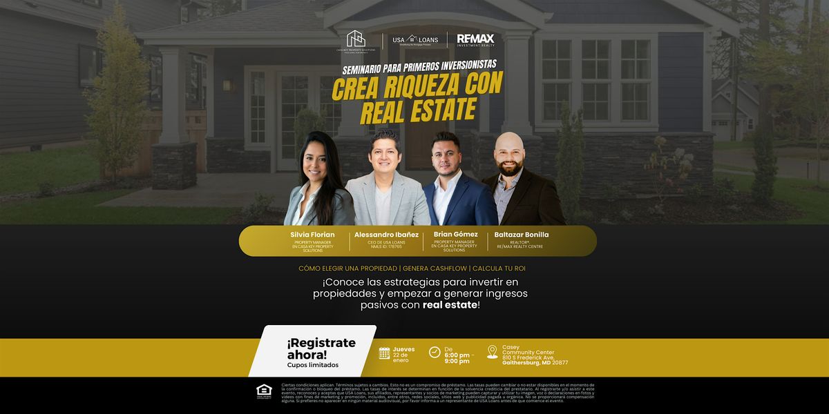 🏡💰Seminario Exclusivo: Estrategias de Inversión en Bienes Raíces¿Estás listo para aprender cómo crear un flujo de efectivo constante y construir tu riqueza a través de bienes raíces? Este seminario está diseñado para inversionistas de todos los niveles que buscan maximizar su rentabilidad y lograr un retorno de inversión (ROI) superior.