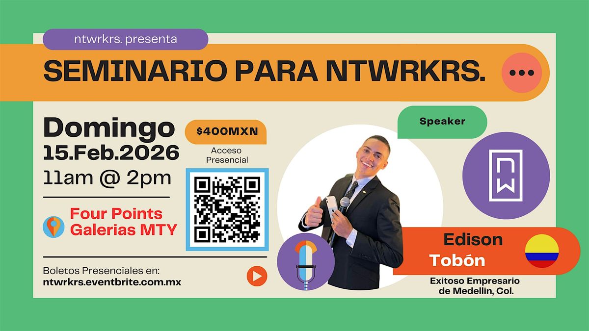 ¡Únete al Seminario para ntwrkrs FEBRERO 2026! Con Edison Tobón, exitoso empresario de Medellin, Colombia como Oradora InvitadaAbout this Event