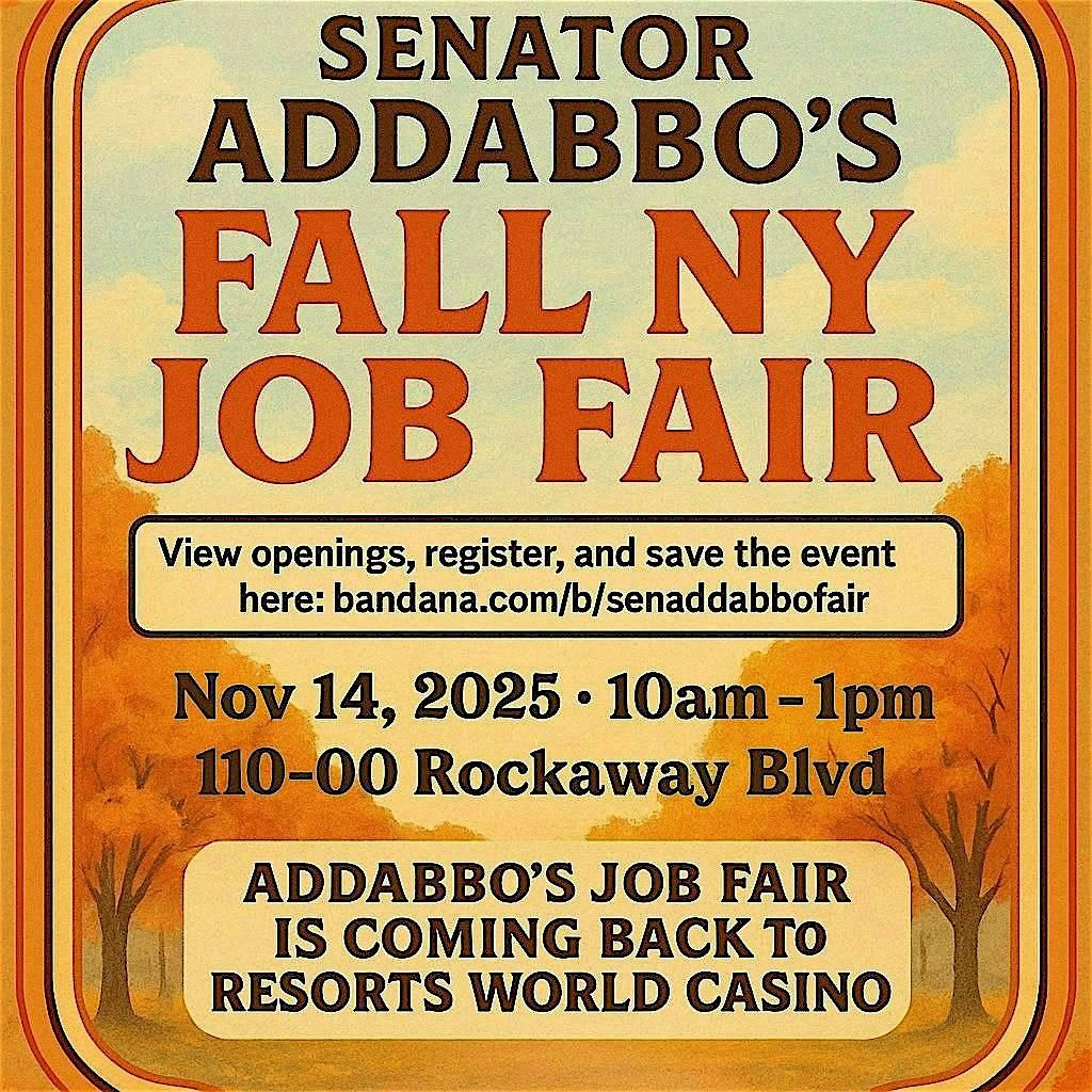 Come meet local businesses and explore job opportunities at Senator Addabbo's Fall Job Fair!About this Event