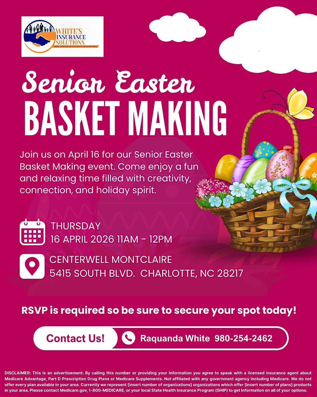 Celebrate the joy of the season with us at our Senior Easter Basket Making event on April 16. This fun and relaxing gathering is the perfect opportunity to get creative, enjoy great company, and embrace the festive Easter spirit.