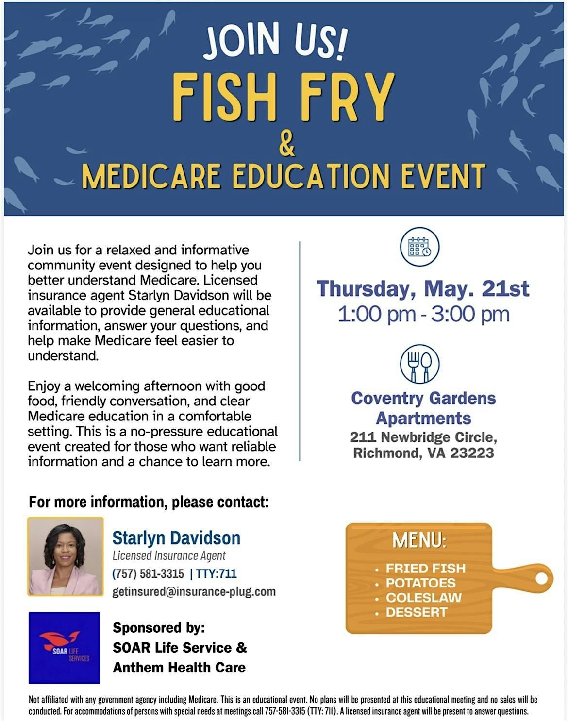 Join us for a fun and friendly afternoon at Coventry Gardens Apartments! This free community event is perfect for seniors looking to relax, enjoy some tasty fish, and meet neighbors. Mark your calendar for May 21, 2026 at 1:00 PM (Eastern Time). Don’t miss out on good food and great company—see you there!
