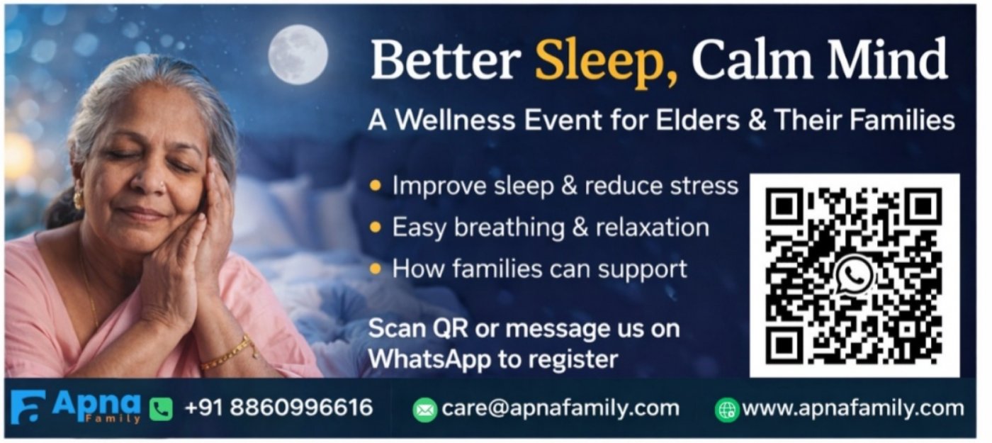 Through simple explanations, guided breathing exercises, and easy daily habits, elders will learn how to calm their mind and sleep better naturally. Families will also learn how small changes in their behaviour, calls, and routines can deeply improve their parents’ emotional health.