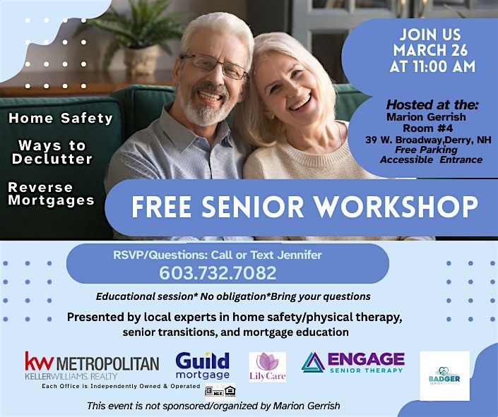 We’re hosting a Senior Planning Workshop designed for active adults who want to stay independent and informed. We’ll cover three important areas: how to safely declutter and simplify your home, practical ways to improve safety and prevent falls, and an educational overview of reverse mortgages and home equity options. It’s not a sales event — it’s simply clear information so seniors can make confident decisions before anything feels urgent.