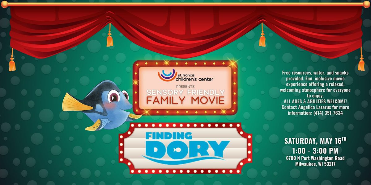 Join us for a magical sensory-friendly movie experience featuring Finding Dory! This special event is designed for children with special, support, behavioral, or medical needs—even those still pending a diagnosis. No proof of diagnosis required!