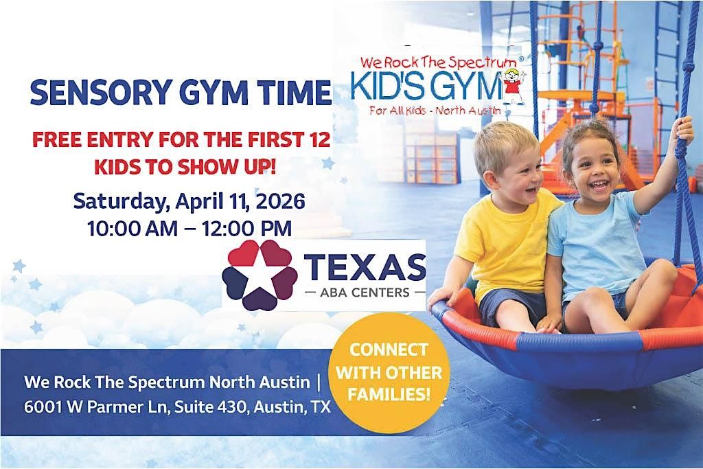 This is a sensory-friendly event hosted in partnership with We Rock The Spectrum and Texas ABA Centers. Admission is free for the first 12 kids sponsored by Texas ABA Centers. Additional attendees are required to purchase a ticket directly through We Rock The Spectrum for great gym time.