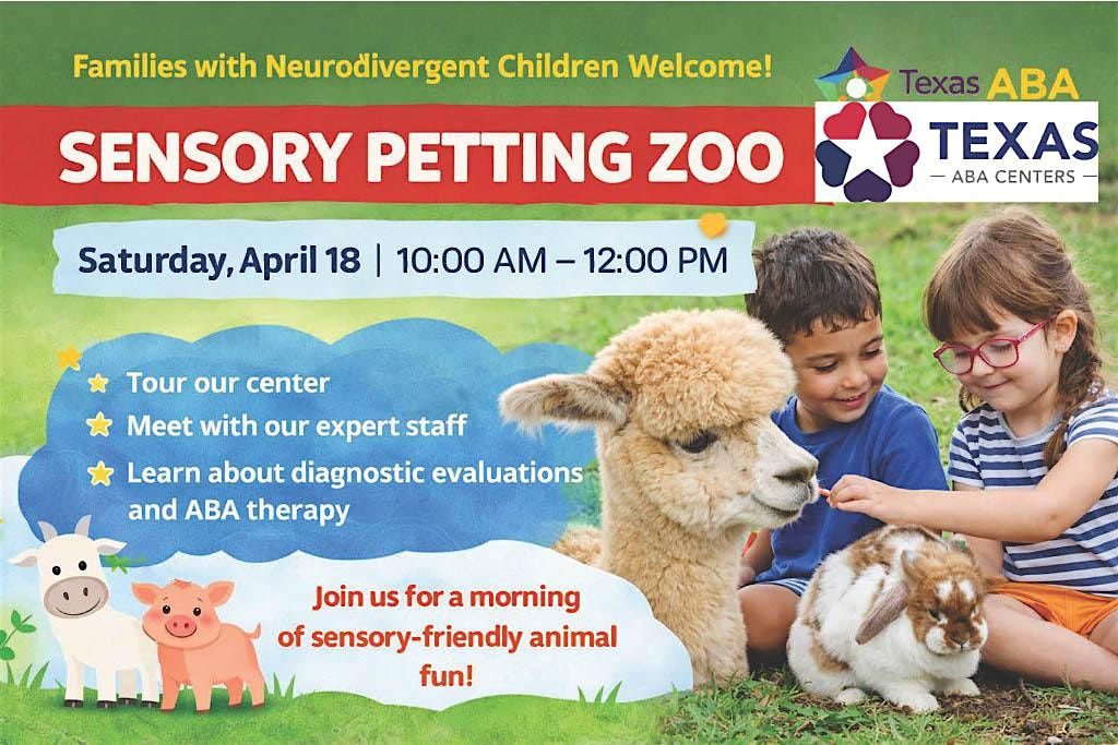 Join Texas ABA Centers for a Sensory Petting Zoo Community Event designed for families with children who are neurodivergent or who may have sensory sensitivities.