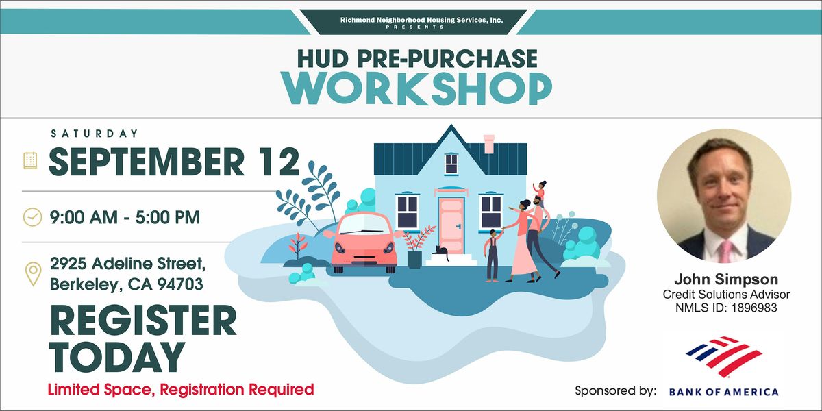 Richmond Neighborhood Housing Services, Inc. (RNHS) has taken it’s HUD Pre-Purchase Workshop in a location near you - Join us Saturday, September 12th at 9:00 am PST!