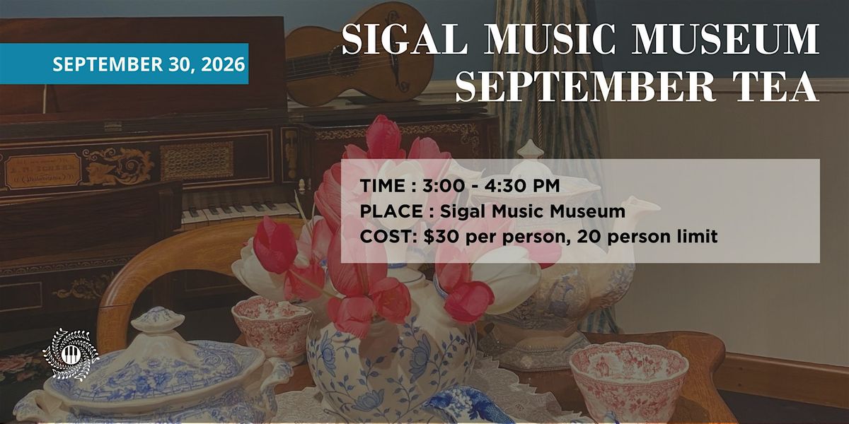 Join Sigal Music Museum for its monthly afternoon tea on September 30, 2026, at 3:00 in the afternoon. Held in the museum, the event will feature savories, sweets, and other fancies! Reserve a table and bring your friends for an afternoon at the museum. Tickets for tea include the price of admission to the museum, so you are invited to explore their exhibits before or after the event.