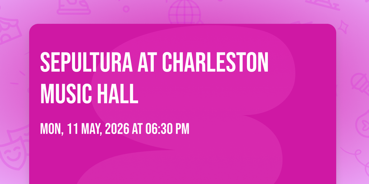 ✨ Experience the magic of Sepultura at Charleston Music Hall, where moments become memories that last a lifetime! 🏛️ The iconic Charleston Music Hall in Charleston, SC sets the perfect stage for an unforgettable celebration on May 11th, 2026 at 06:30 PM. 🌟 It's been a curated experience that brings together the best of entertainment and innovation, creating an atmosphere of wonder and excitement. From the moment you arrive, you'll be immersed in a world where the ordinary transforms into the extraordinary. 🎊 Book early to secure your place in what promises to be an event that will be talked about for years to come!