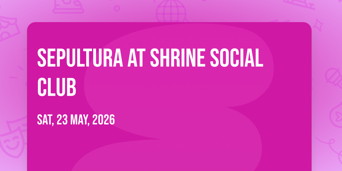 🎉 Welcome to Sepultura at Shrine Social Club, where the impossible becomes possible and dreams take flight! 🏛️ Join us at Shrine Social Club in the heart of Boise, ID for an event that will redefine your expectations. 📅 On May 23rd, 2026 at 05:30 PM, witness the transformation of space and time into something truly magical. ✨ It's a curated experience combining the best of innovation, entertainment, and community spirit, creating moments that will be remembered for years to come. Whether you're a first-time visitor or a seasoned enthusiast, prepare to be amazed. 🎊 Book now to ensure your place in this unforgettable experience!