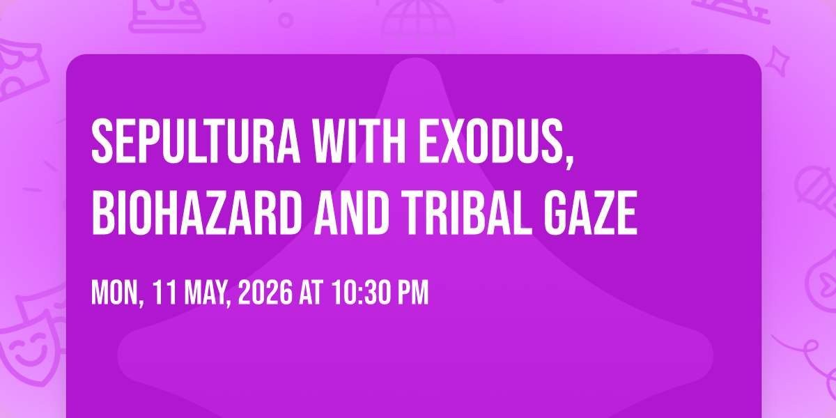 📍 Location: 32.7885, -79.9369🎉 Welcome to Sepultura with Exodus, Biohazard and Tribal Gaze, where the impossible becomes possible and dreams take flight! 🏛️ Join us at Charleston Music Hall in the heart of Charleston, SC for an event that will redefine your expectations. 📅 On May 11th, 2026 at 10:30 PM, witness the transformation of space and time into something truly magical. ✨ It's a curated experience combining the best of innovation, entertainment, and community spirit, creating moments that will be remembered for years to come. Whether you're a first-time visitor or a seasoned enthusiast, prepare to be amazed. 🎊 Book now to ensure your place in this unforgettable experience!