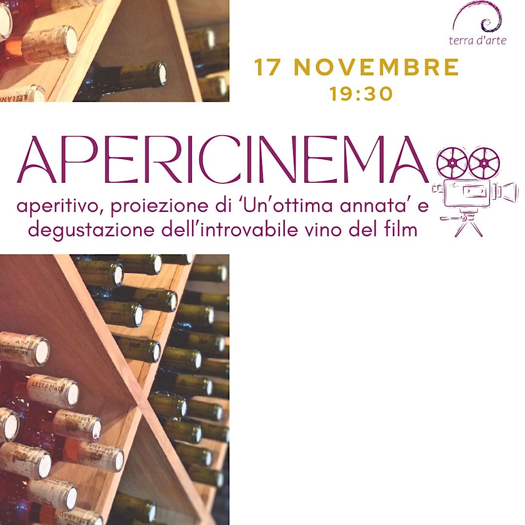 Un'occasione per gustare un delizioso aperitivo in compagnia di amici e appassionati di cinema. Durante la serata proietteremo il film 'Un'ottima annata', una commedia romantica che ti farà sorridere e sognare. Al termine della proiezione avremo l'occasione unica e irripetibile di incontrare il protagonista del film!