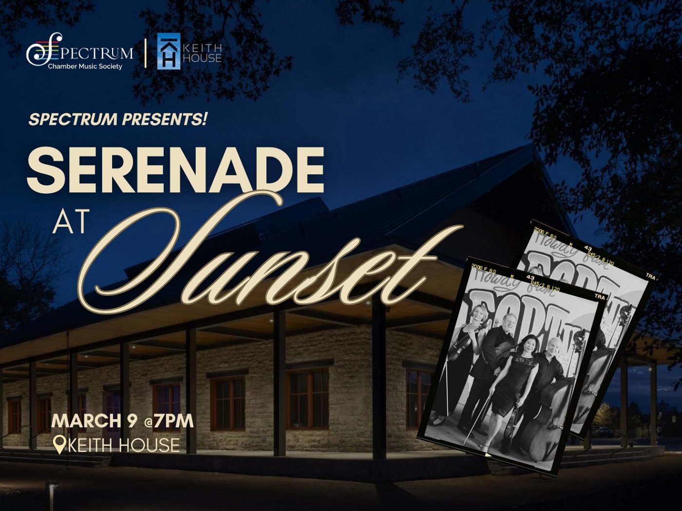 Spectrum Chamber Music Society presents an intimate chamber music concert on March 9 at 7pm at Keith House, featuring Fort Worth Symphony Orchestra musicians. This performance invites audiences to slow down and engage with sound, light, and perception in a setting inspired by James Turrell’s Light and Space movement.