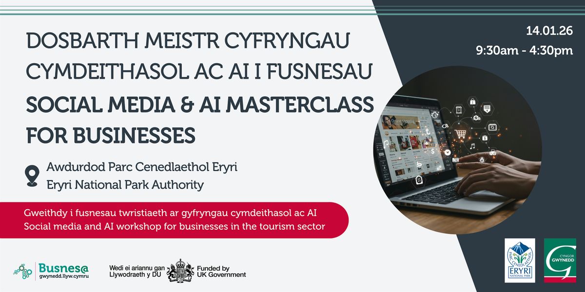 If you’re a tourism or hospitality business owner in Gwynedd and Eryri and wanting to enhance your social media presence, then our social media masterclass is for you!
