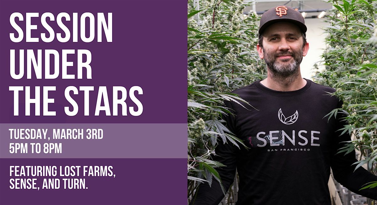Join us for our next Session Under the Stars! This event features three brands we love. Turn will be there sharing about their high-quality vapes. Sense will be there talking up their top-shelf flower. And Lost Farms will also make an appearance with their tasty edibles.