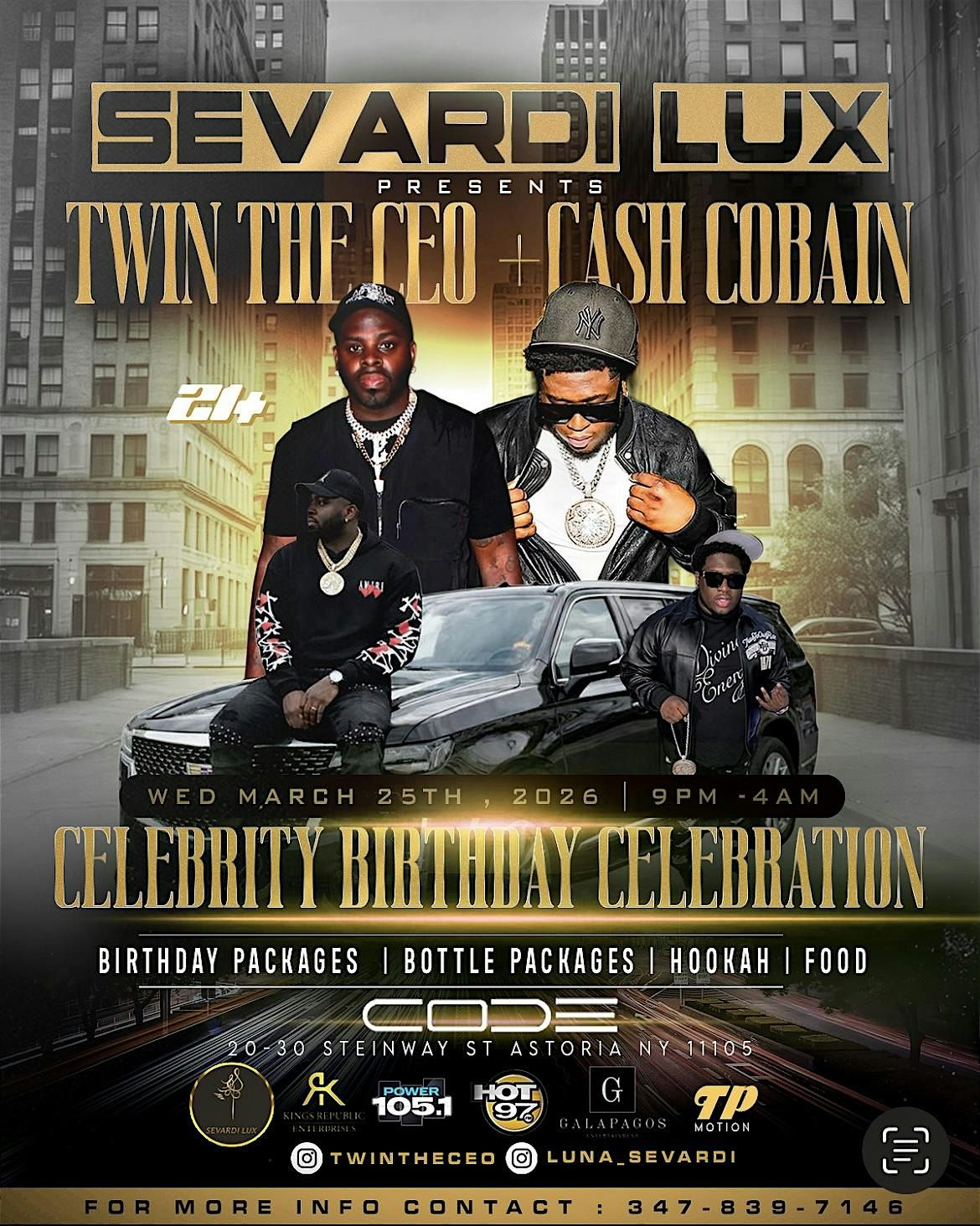 Get ready to vibe live with SEVARDI LUX, TWIN THE CEO, CASH COBAIN & ELLA at the ultimate celeb bash!About this Event