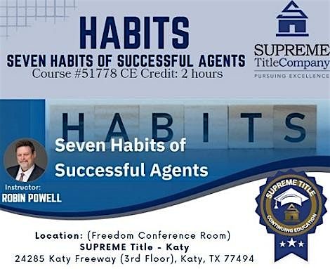Agents will discuss and understand how there are seven specific habits associated with activities governed by TREC.About this Event
